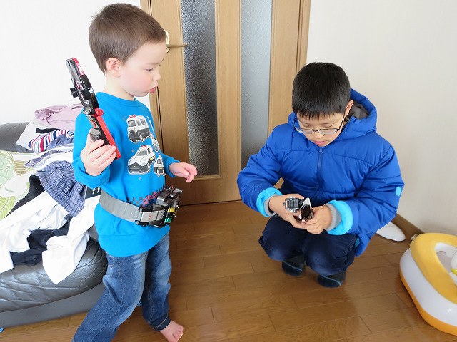 Ryogo兄さんの変身道具を組み立ててもらって