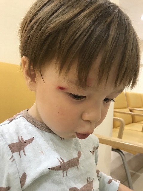 Lucaちゃんがソファーからおもちゃの上に落下、イタッ(+_*)、すぐに病院へ。