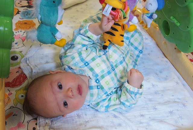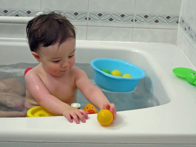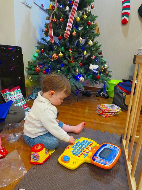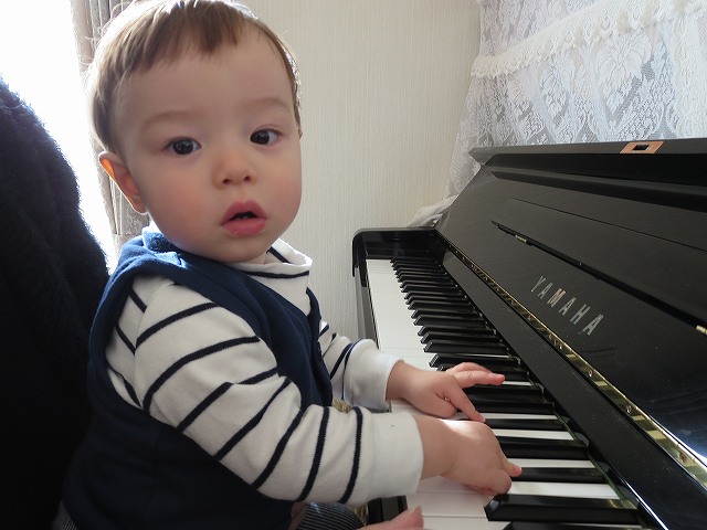 マミーと一緒にピアノを弾き、グランパとお風呂に入り、一人遊びもできました