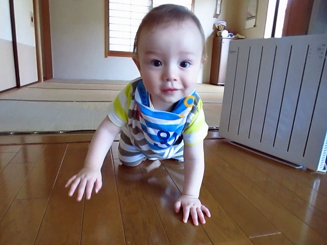 2015年12月(寝てる)、2016年6月(ハイハイ)、2016年11月(歩く)の順番です