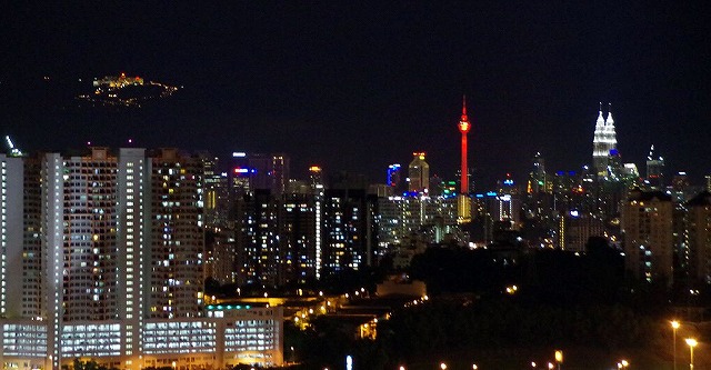 夜景写真(左上:ゲティンハイランド、中央:KLタワー、右側:KLツインタワー)