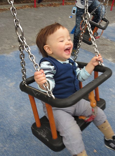 帰りは、今日から改装オープンした公園のブランコで楽しく遊びました