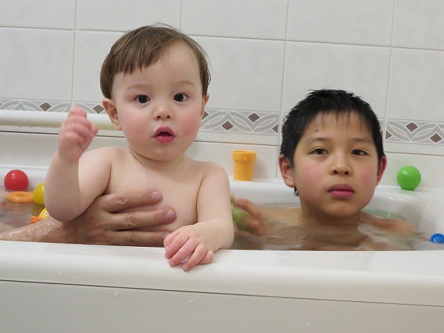 夜は、諒悟兄さんと一緒にお風呂で楽しみました