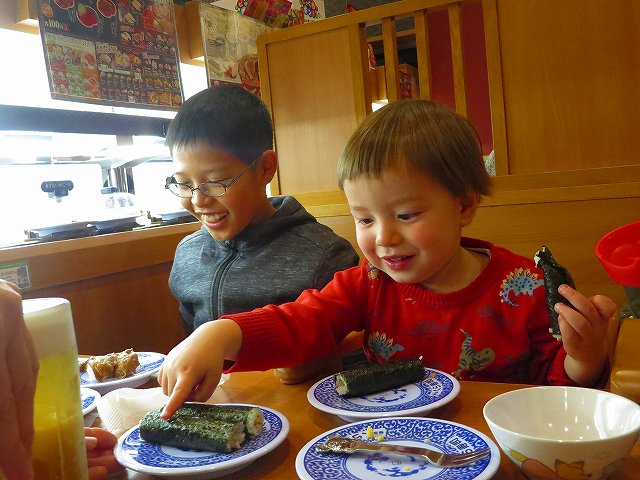 夕食は、回転寿司で大好きな納豆巻きです