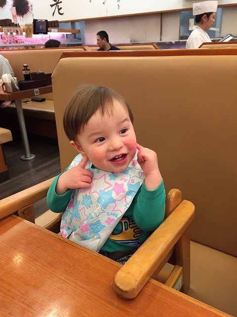 納豆巻きを2本も食べました。そして青海苔汁の海苔をほっぺの下にくっ付いています。